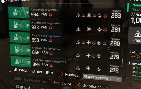 Ahogy látszik ez összesen már 60%, azaz pl tok + 1 módosító lehet más, de ha a Mellényen vagy Kesztyűn nincs akkor sem gond, ha vannak persze megfelelő módosítók. Ha úgy jön össze a 49 vagy 48% is teljesen OK!Fegyveren az alábbi tálentek legyenek: Kompetens + Tehetséges + 3. helyen ezek jól jönnek: