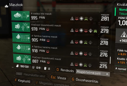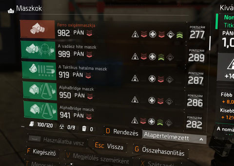 Mellény: Páncélsebzés+Képzettség töltődés (Páncélsebzés vagy képzettség helyett lehet HP is, képzettségről lent bővebben) Lőszer helyett lehet rajta +XP is, nem nagyon kellesz ezzel lövöldözni.Maszk: Páncélsebzés+Elitsebzés. Szerintem a +10000 képzettség nem dob rajta annyit, mint mobok ellen a 8% páncélsebzés, szóval mindenképpen Páncélsebzés. Térdvédő: Képzettség + alsó hármon: Elite sebzés + XP (nem gáz ha nincs, csak több XP-t kapsz) + bármi