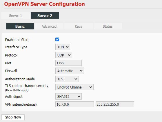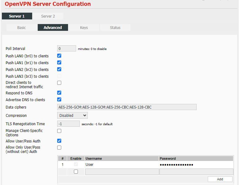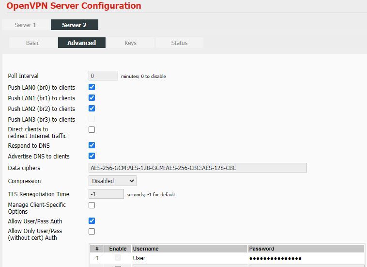OpenVPN server 2 (port és username a képernyőmentés miatt módosítva....):
