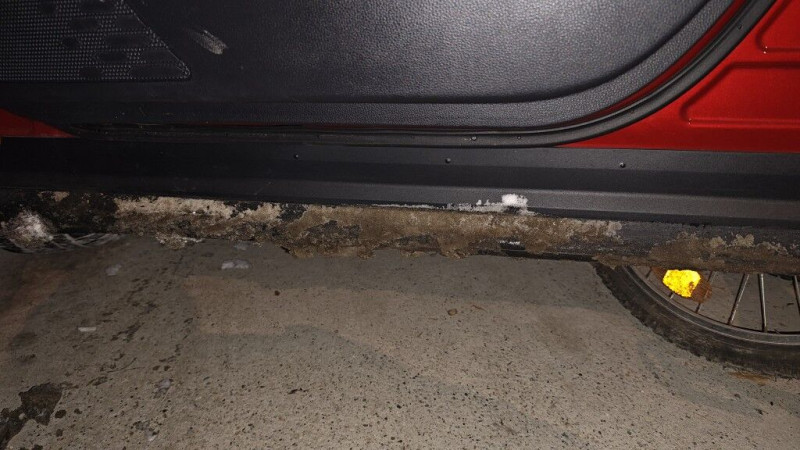 Viszont hazaérve a garázsban egy furcsa dolgot vettem észre, az ajtók aljában a belső oldalon állt a sáros hó