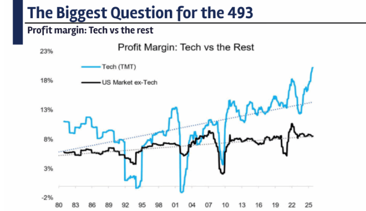 A fő kérdés most az AI hatása. A GS elemzője ezek szerint arra tesz hogy az gyengébb lesz a vártnál. Ha ez így lesz, akkor számbavéve az összes egyéb problémát (amelyeknek az AI által szállított csoda az utolsó reménye, pl. globális felmelegedés) az elvesztett évtized teljesen racionális várakozás.