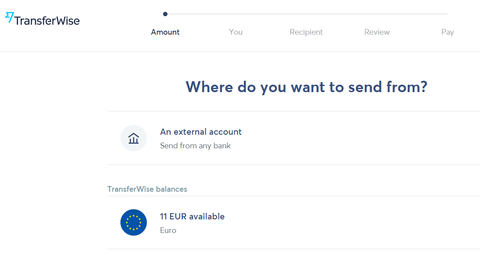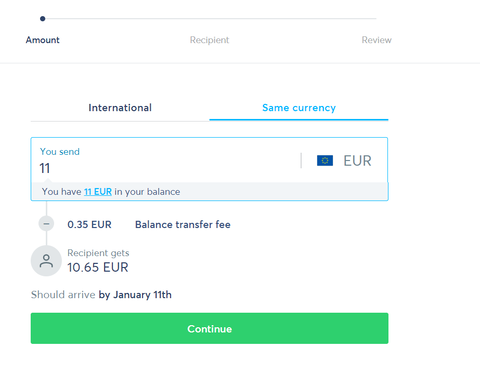 Elindítom az utalást, kiválasztom, hogy a feltöltött 11 EUR egyenlegből szeretném.