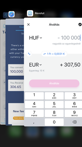 Félreértek valamit? Miért érdemes inkább a TW kártyát használni?A képen a revolut váltása látszik 100000 Ft esetén 307.50 euró, és a transferwise oldalán a kalkulátorral a kártya használatot nézve (tehát nem az átutalás) ugyanennyi forintra 306.65 euró jön ki.