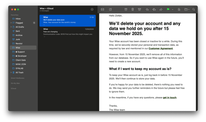 Kár is megnéznem. (Azért megszoktam nézni.) Mivel a Wise Folder-be csak is az innen kapott Email-ek helyeződnek át: noreply@wise.com Ahogy írtam filterezve vannak a hivatalos Email címek.
