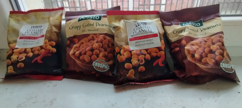 Na, gondolom azt se a Tescoban vetted. Én sajnos ott csak wasabi (felejtős) chillis (max a sima paprikással keverve jó) és sima paprikást találtam. Tegnap vettem két csomaggal hazafelé, szóval most megint 2,5 csomag van itthon belőle, de még van sós mogyiból is 500gr (még németből) meg hajas amerikai mogyoróból is egy nagy zacskóval.