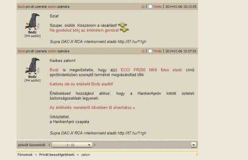Nem jön privát üzenet ha valaki értékelni szeretne. Csak e-mailt kaptam.