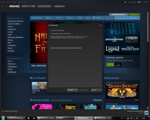 Neked nem hozza be a steam-et? Mert nekem igen és az a baja, hogy steam-en nincs aktiválva, így nem tudom letölteni.