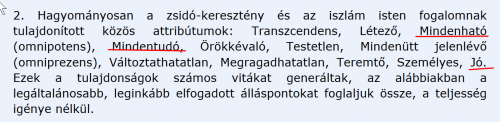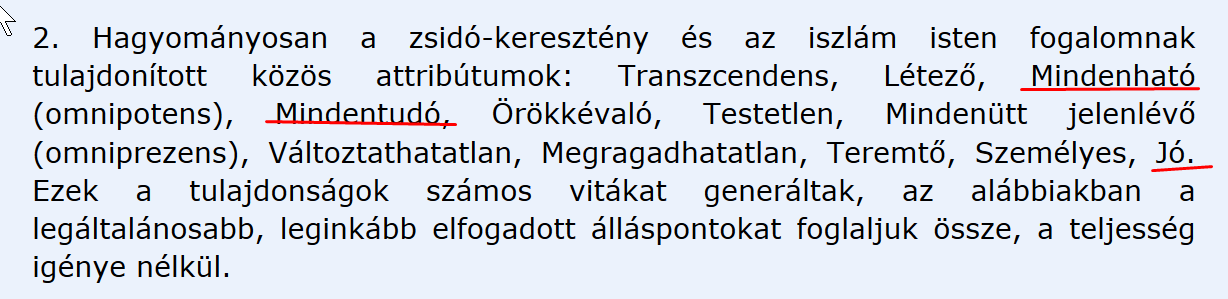 A kötekedés messze áll tőlem. Elismerem, hogy ha nem is nulla, de rendkívül kicsi a Bibliai ismeretem. Természetesen elismerem, hogy nem mindenki fogadja el ezt, de a többség szerintem igen: Az isteni attribútumok:
