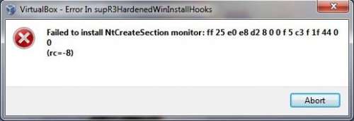 Virtualbox volt már a gépemen, volt telepítve WinXP meg Linux Mint. Na most egy jó pár napig ( talán 1 hét) nem volt használva. Egy-két nappal ezelőtt,mondom megnyitom, nemárt egy kis linuxozás, hát nem jött össze, ez a hiba üzenet fogadott :Failed to install NtCreateSection monitor : ff 25 e0 e8 ac 8 0 0 f 5 c3 f 1f 44 0 0 (rc=-8)