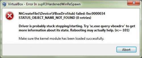 2350.1a04: NtCreateFile(\Device\VBoxDrvStub) failed: 0xc0000034 STATUS_OBJECT_NAME_NOT_FOUND (0 retries)