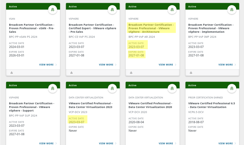 Mondjuk van valami Architecture, aminek a dátuma a VCP vizsgámhoz köthető, az lejár, de ilyenem eddig még nem volt.