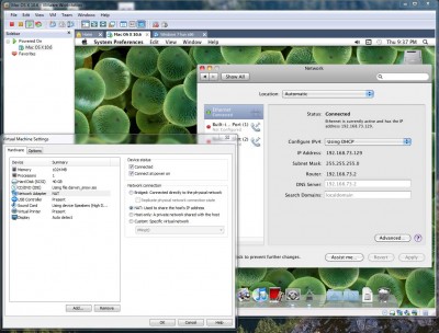 , nálam nem egyik helyen sem megy, igaz az osx 10.5 körüli, és 7-es is még az első stabil kiadás lehet (campus/tiszta szoftveres).Nálam is simán NAT-olva van, csak a VMware virtuális háló kártyáját nem ismerik fel, pontosabban a 7 nem ismeri, az osx meg csak simán nem megy, ahhoz nem értek.