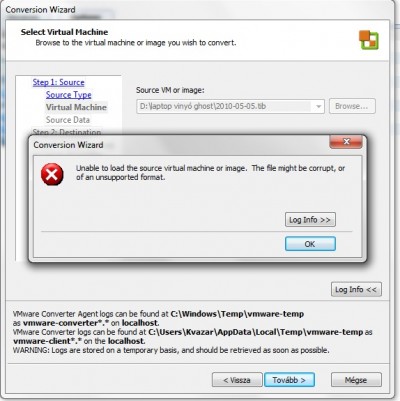 3. csinálok egy ghost fájlt és azt alakítom át virtuális géppé.Nos én már mindet mindenhogy kipróbáltam, de siker nélkül.