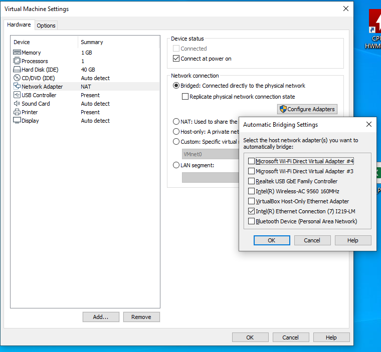 Az automatic bridgingnél nem lehet kivenni a pipát (szürke). Egy guest oprendszer sem futott, amikor a képeket készítettem. Mit nem csinálok jól? -