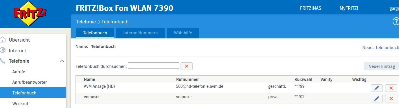 Van egy telefonkönyv, ahol fel lehet venni usernevet is gyors tárcsázásra. Próbáltam mindenféle formátumot, @voipbuster.com véggel, a nélkül, @-al az elején de sehogy se megy. Beütöm a **702-t a telefonon és vagy egy hang bemondja angolul hogy a telefonszám hibás, vagy csak sípoló hangot ad (vonalhiba talán). Maga Fritzbox jól van beállítva, mert az Eigene rufnummer alatt látszódik zölden, és a főoldalon is írja, hogy aktív. Illetve erre a userre egy pc-s programból indítva a hívást csörög is a telefon.