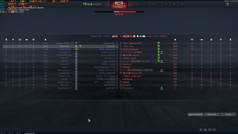 9.7 szovjetezek és 10.0 németezek, nálam is tele van mindent alázó, sebezhetetlen kínai nevű játékosokkal a meccs, percek alatt lealázzák a csapatunkat, én meg pattanok róluk, de volt, hogy hárman lőttük 3 felől, és kiszedett minket, alig sérült valamit egy ZT96 (P)-ben