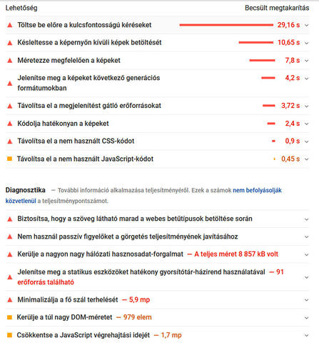 radi8tor: Érezhetően lassú is, főleg lassabb nettel (persze, mert 8 Mb a főoldal (!). Van egy loader az elején, az kicsit csal, de akkor se jó. Ennek egy része, hogy vacak a hosting cég, ezt eddig is tudtuk (anno nem is kellett jobb, de olcsó volt), a többi meg a hanyagság, trehányság. És nem azért, mert egy template készítővel készült vagy mert WP. Én 90-95 feletti oldalakat hozok simán egy WP + Gantry 5 framework párossal. De az, hogy fölöslegesen nagy és optimalizálatlan képeket használ, nincs semmi optimalizálás (minify, lazyload, cache control, semmi, tényleg)...