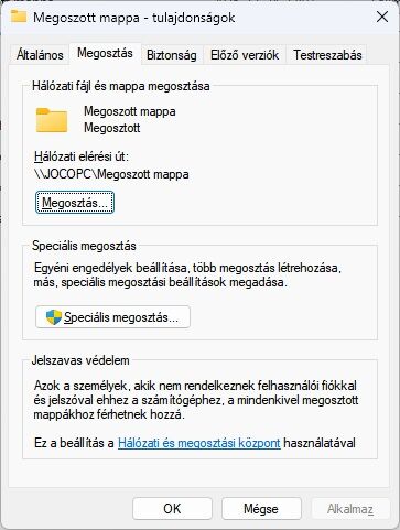 A C: meghajtón mindkétgépnél hoztam létre egy mappát, amit elméletileg megosztottam, és a Gépházban is kivettem a jelszavas védelmet.