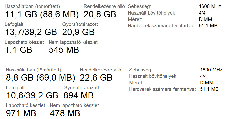 Sajnos nincs régi képem a Feladatkezelőről, de lehet 16GB-nál is 20GB-t volt Gyorsítótárazva vagy az a RAM méretétől függ? Gondolom RAM-ból gyorsabb az elérés, mint SSD-ről. -