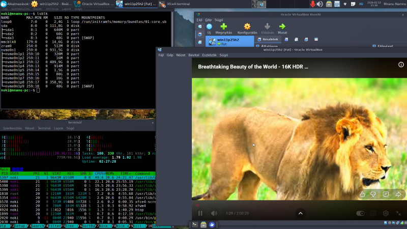 A kedvenc debianomba telepítettem virtualbox programot. Ezután [linux-live] script segítségével csináltam belőle buildet, amit aztán frugal módszerrel egy másik linux grub menüjébe felvetettem, s annak segítségével egyból a ramba küldtem fel. A bebootolt rendszerben swap partíciót kapcsoltam fel hozzá (utólag látható, hogy nagyon kevés swap kellett a windows telepítéshez, ill a telepített windows futtatásához, de kevesebb ram esetén meg ledöglik a telepítés) és a windows11 25h2 telepítőt a virtualboxba telepítettem. Hangja még nincs, meg a felbontás is kevés, de működik. Itt lesz egy kép róla.