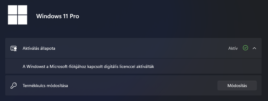 —►W10—►W11 upgrade során szerzett digitális licenc, ha a kiindulási alap, azaz a Windows 7 jogtiszta. -