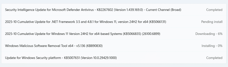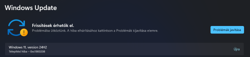 na már most hibaüzenettel megállt, nem ment fel. Újraindult és azt írja, hogy a funkciófrissítés 24h2. Oké, eddig rendben is volna, csakhogy akkor, amikor próbáltam szinte azonnal lejött és ma is települt 4 frissítés: 25H2-re.