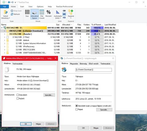 Ha nem teszem föl a Treesize-t, akkor ezeket néztem volna és ~ 58 GB foglalt terület.Miért mutat többet a Treesize, mint a másik kettő?