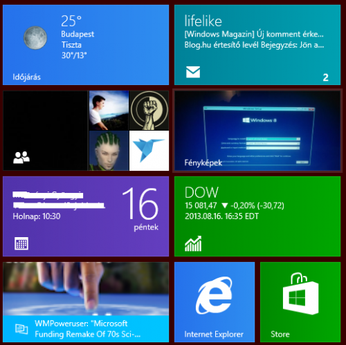 Ezért baj ez a dupla felület.Már azthiszem írtam, de szerintem az lett volna a megoldás (nekem legalábbis talán tetszene), ha a desktop helyén lenne a mostani start képernyő. Akkor lennének minialkalmazások is (vagyis a szerepüket átvehetnék az élő csempék), lenne taskbar (akinek nem kell, autohide), és nem lenne két külön alklamzasáslista, egyik a startscreen, másik az all apps.