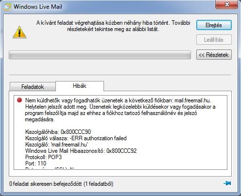Üdv a Live Mail-t szeretnék a Freemail-es címemet beállítani. De mindig a hitelesítésnél elakad. A hibára ráguglizva nem sokkal lettem okosabb.