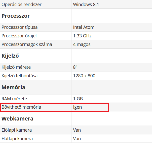 -16 gigás vagy nagyobb tárhely bővíthetőséggel
