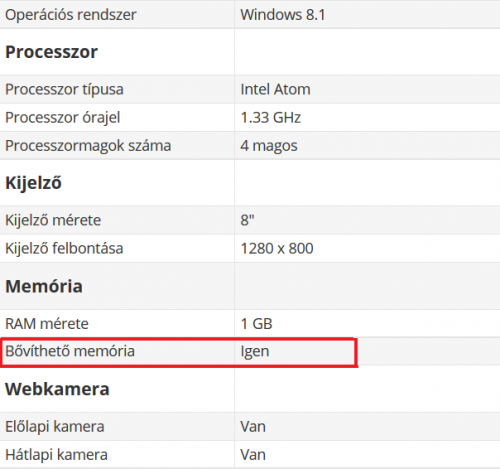 Ez szerintem az "Acer Iconia Tab W1-810 NT.L7GEC.003" adatlapja, de nem 100%. De most hogy látom, milyen árakon vannak a normálisabb Windows tabletek (a kínaiak is...), valószínűleg inkább csak egy windows phone-t veszek. Bár még meggondolom, hogy a nagyobb kijelző (8") miatt ne vegyek e helyette egy 1GB-os 720p-s Windows tabletet, mert kb: egy árban vannak...