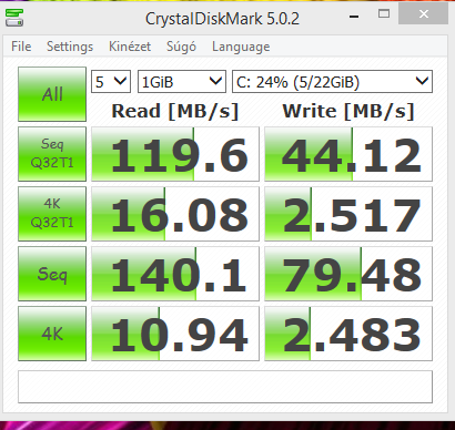 Belső tárhely sebessége: