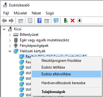 - PC-n hálózat alaphelyzetbe állítás (Gépház). -