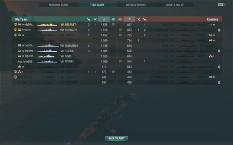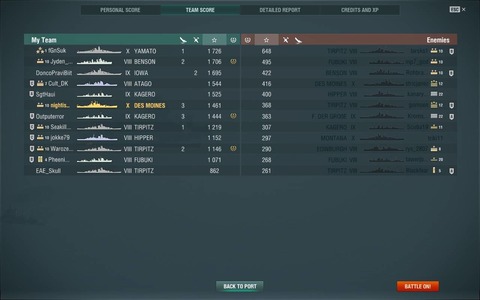 Ja a végét csíptem el, most már Notser is nyomja velük megint, bár már késő van. Fura egy jószág ez az Akizuki, japán létére nem igazán gyújt a HE a 100mm-es AP viszont olykor betojás miket sebez.