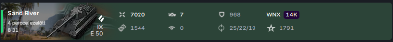 Ma az egyik csatámban volt a túloldalon egy 10.600-as értékelésű szakasz, akiknek azt mondta a gép, hogy NOPE! 6!! lövését pattintottam/"védtem ki" a Skorpio G-nek egy Char mle. 75-tel... 1300+ páf, 18 nem átütő találat, abból 10 volt csak Ares...