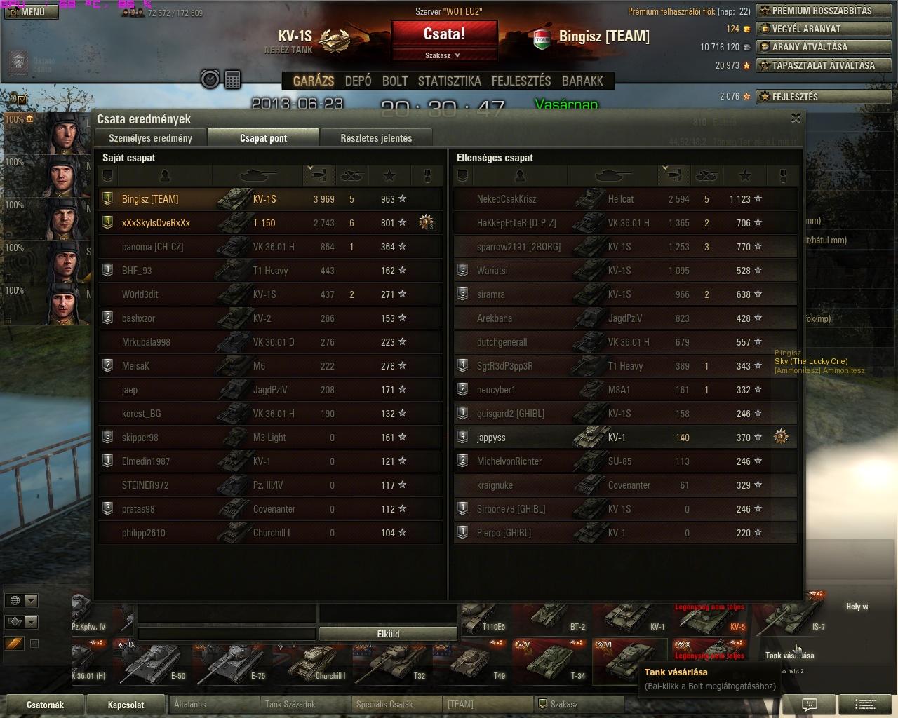 Az RNG most semmi esetre se akarta hogy győzzünk. A hever lepattant az 50 hp-s Hellcatről, nekem elcsúszott a szerver célkeresztem az egyik lövésnél 90 fokban, ami miatt nem tudtam időben visszaindulni, és a végén nem adott be annyit a Kv-1-nek az ágyúm, hogy megölje egy lövéssel...