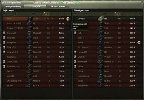 Hát valamit sikerült jól elqrniuk az MM-ben, mert most voltam egy csatában ahol nálunk 4 db tier 10-es az ellenfélnél meg 8 db tier 10-es volt...nem nyertünk.