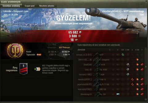 Én most végeztem a 3-as divízióval eddig lassabban haladok mint az előző idényben, de kezdek egyre jobban belejönni. Eljutottam arra szintre hogy minden győztes csatában top10 vagyok és a vesztesek több mint felében top5, stabilan hozom a 2k feletti átlag sebzést így ha több vesztes csata jön az sem vet nagyon vissza. Felvettem az utazó sebességet.