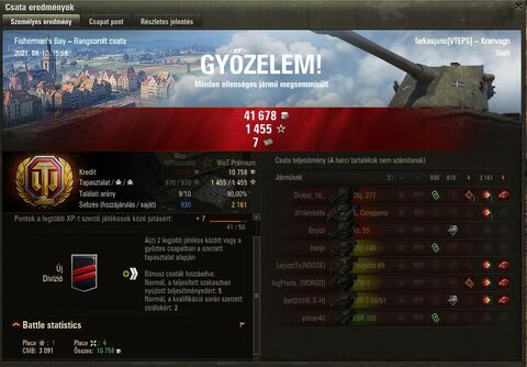 De a végén miután 8-->9-->8-->9 lifteztem 2 db Kranvagen csata megkoronázta a 3-as divízióban eltöltött csatáimat és sikerült két top XP-s csatával 4 sevront behúzni és ezzel felugrani a 2-es div-be, amivel megnyílt a shop, így be is gurítottam a CONCEPT 1B-t is a garázsba. Remélem tényleg jó tank és megérte a szenvedést.
