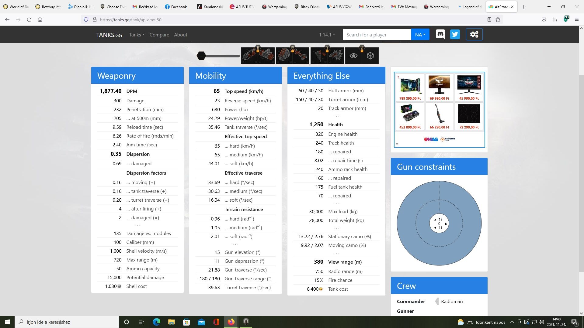 Köpet: teljesen spotra van kiépítve és nagyon meglátszik a vstab meg töltésgyorsító hiánya mikor az ellenséges VK-k ellen megyek sajna