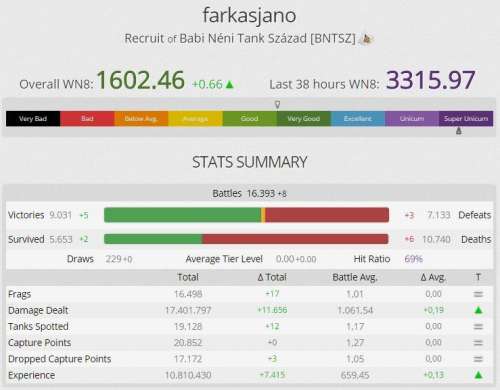 Nem csalódtam a statisztikában. Mostanában kevesebbet játszok, azt is prém nélkül, kellett egy farmolós, visszavettem a Nashorn-t, raktam bele egy szedett-vetett legénységet, és még így is fun, mellesleg hozza is a kreditet. A TOGra is ezzel + a SU100al hajtok, és eddig elég jól működik...