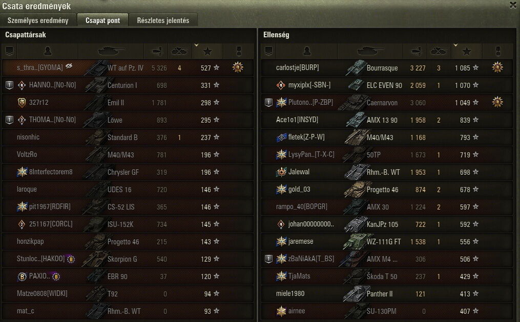 Egy időben szakaszoztam sokat egy lila sráccal. Akkoriban húztuk mindketten a friss Kínai közepes ágat és többször is voltunk WZ120-akkal szakaszban. Ugyanaz a tank, ugyanolyan modulokkal, nagyjából hasonló felszereléssel, és konzisztensen min. 30%-al többeket sebzett a csatákban, mint én, pedig egymás mellett álltunk. Ennyit számít a stabilabb kéz, megfontoltabb célzás, nyugodtabb egérkezelés, ilyesmik.