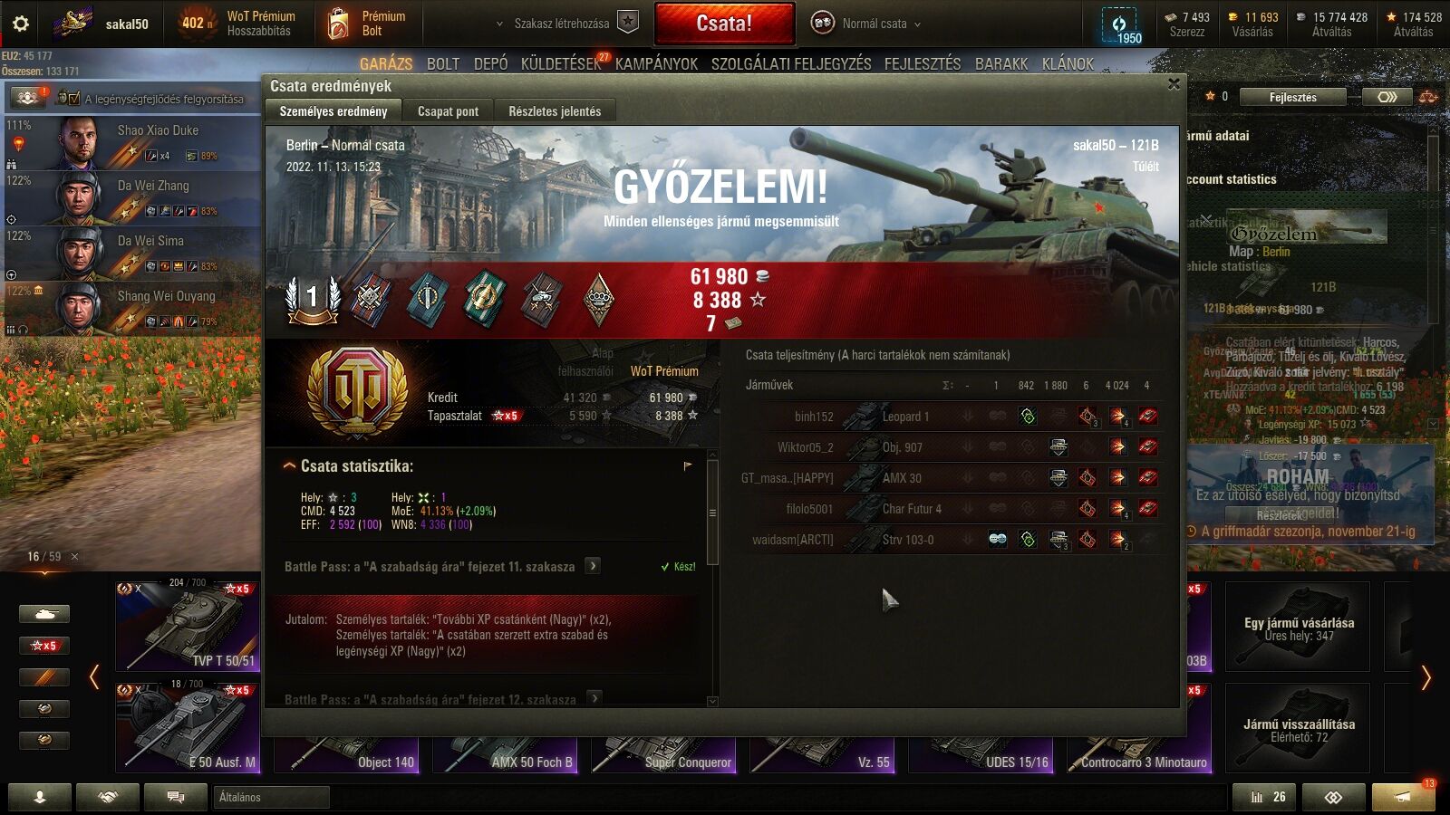 Annyi könnyebség volt, hogy mivel a bz166 nehéz tank és közelről lőttem vele, ezért győztes csatában is általában sikerült a top10-ben lennem, de még így is egy borzalom az tank. Ha lett volna töredékem vagy szabad xp-m, akkor azonnal átugrottam volna.
