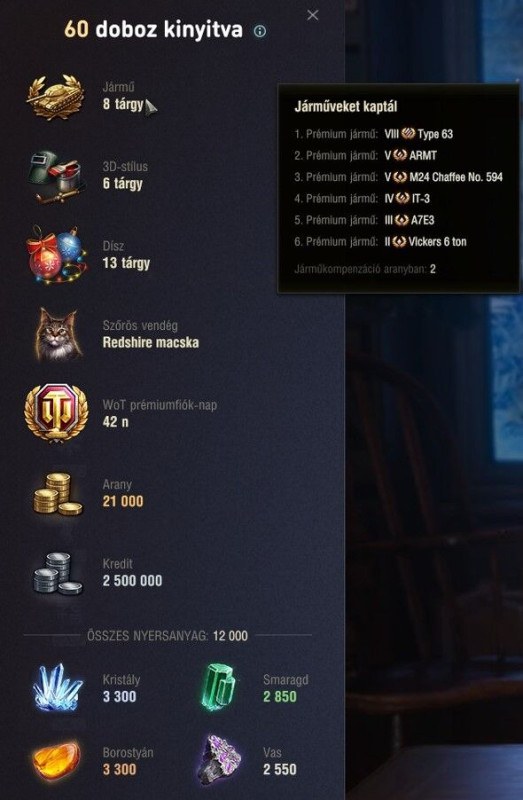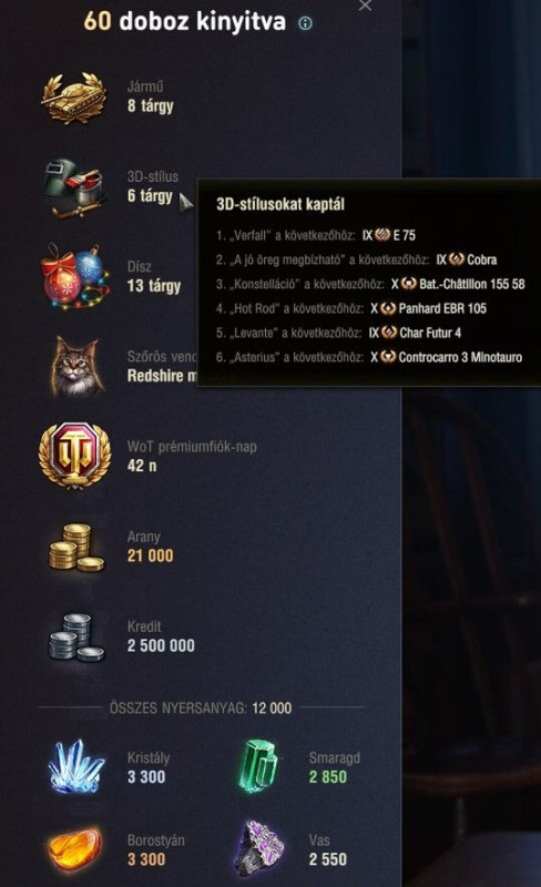 Ahogy nézem a nyitás mechanikán nem változtattak, vagyis ha kék csillám felhő száll fel a ládából, akkor van benne tank vagy 3D sítuls, ha arany, akkor csak az "apróság".