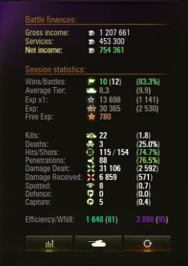 Fogyóeszköz (olcsóbb): 2 db kis elsősegély, 4 db kis javító, 2 db végsebesség határoló, 2 db kézi tűzoltóVastaggal hoztam, amit használok ezekből. Ha eladom a felesleget, akkor az még 300k kredit. Vagyis 85 csatával farmoltam alig 900k tiszta hasznot, meg beszereztem 80k értékű fogyóeszközt. Hát nem mondom az év biznisze volt...