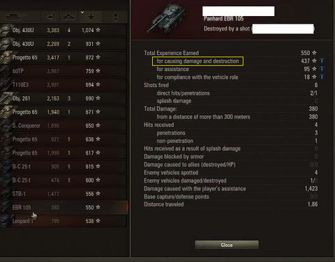 - Dealing damage to vehicles in the view range (upon own spotting)