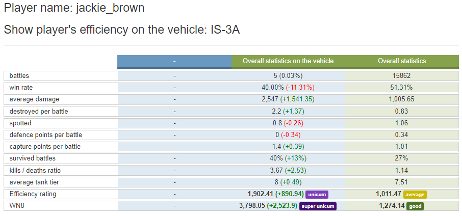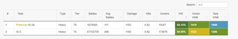 Majd pár hét múlva kíváncsi leszek az IS-3A szerver szintű győzelmi statisztikájára. Ha 55% felett lesz, mint az obj268v4-nél volt akkor muszáj lesz vele valamit kezdeniük. Jelenleg így néz ki a szerver stat. Sajnos vbaddict megdöglött pedig ott recent stat volt, ha jól rémlik elmúlt 30 napra. Azt lett volna jó megnézni most és 30 nap múlva.