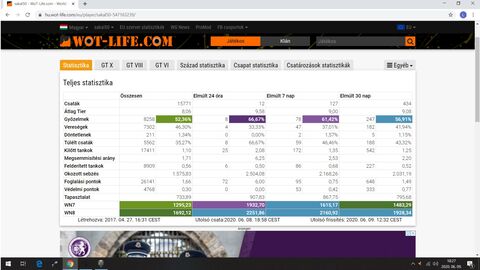 8000 feletti ingame értékelést már sikerült 8k alá letornáznom, mióta tavasszal újrakezdtem. De azért már az 1400-as wn8 nagyjából megvan, de az is 2000 felett volt, mikor abbahagytam (még picivel talán felette van most is). Azért most már kezdek belejönni, de még mindig messze nem megy úgy, mint mikor abbahagytam.