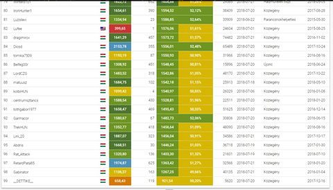 xAttilax nekem sincs meg rengeteg tankkal az atlagsebzes, de mondjuk zold, netan sotetzold a WN8am veluk, az azt jelenti, hogy az alacsonyabb sebzesem ellenere (sajat HP alatti sebzes) azert megis letettem valamit az asztalra a csapatnak, nem?