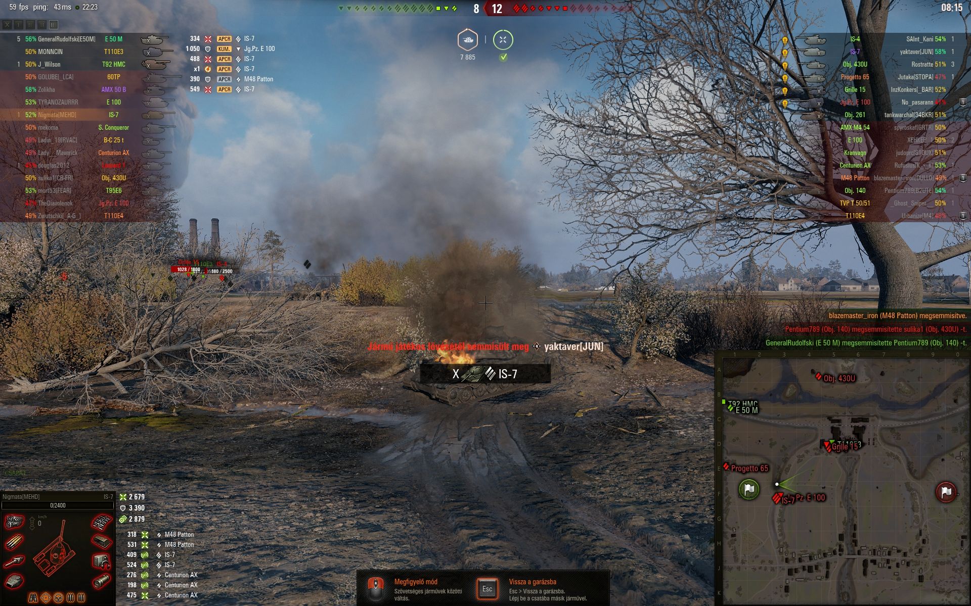 Nálunk 5-en maradtak, náluk 8-an és tőlünk az E75 kivételével mindenki 400 hp alatt volt. Aztán következő csata után megnéztem a csatajelentőt és baszki megnyertük. Fogalmam sincs hogyan hozták le innen, de nagy grat nekik, biztos epic vége volt a csatának.